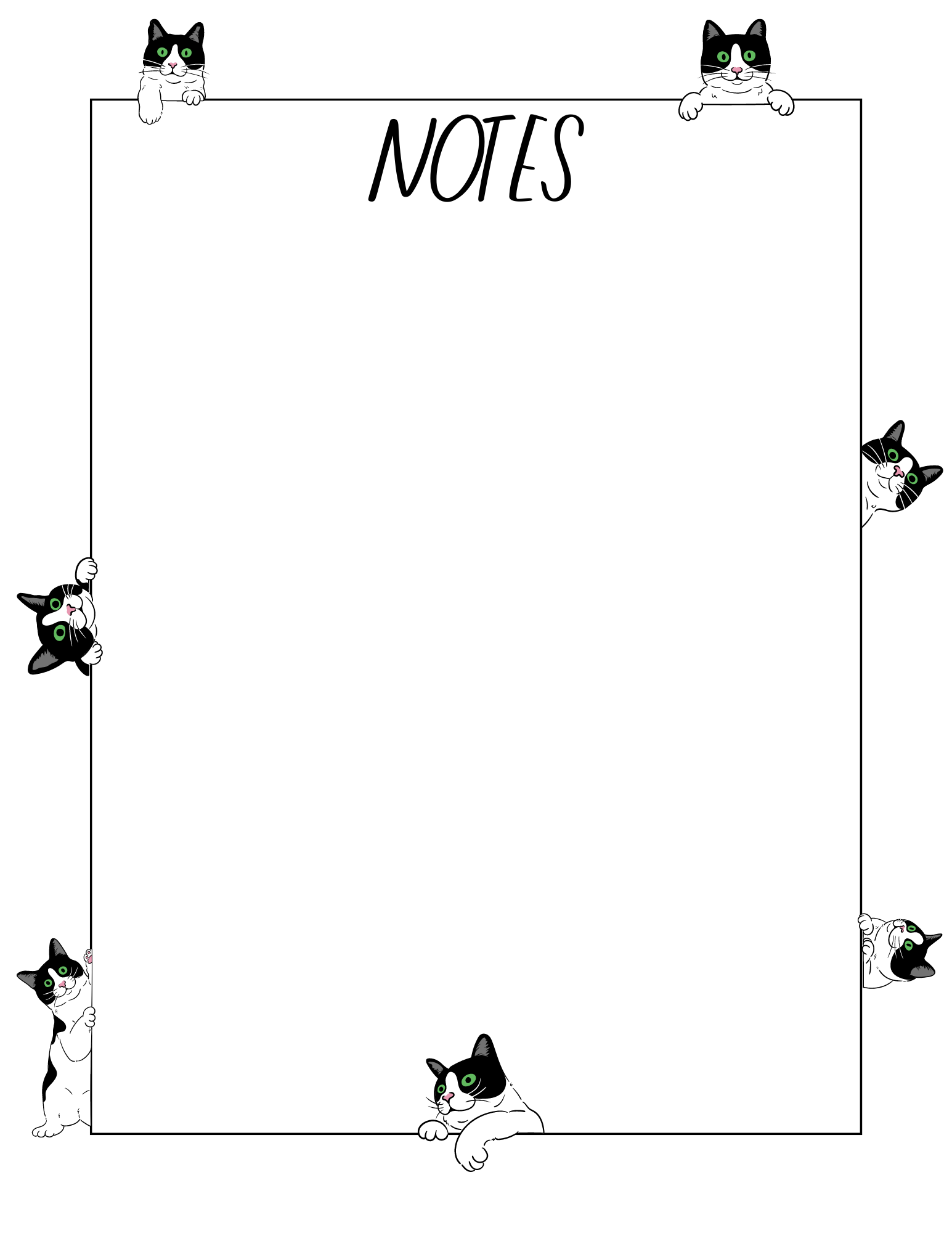 Black and White Tabby Cat Peek-A-Boo Printable Stationery, 1 set of Digital/ Printable Designs. 1 Size 8.5x11 pdf format for Download | Lined and Unlined